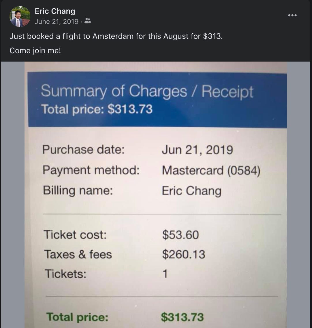 Let’s say you found a round trip plane ticket to go to Amsterdam for only ~$300.
