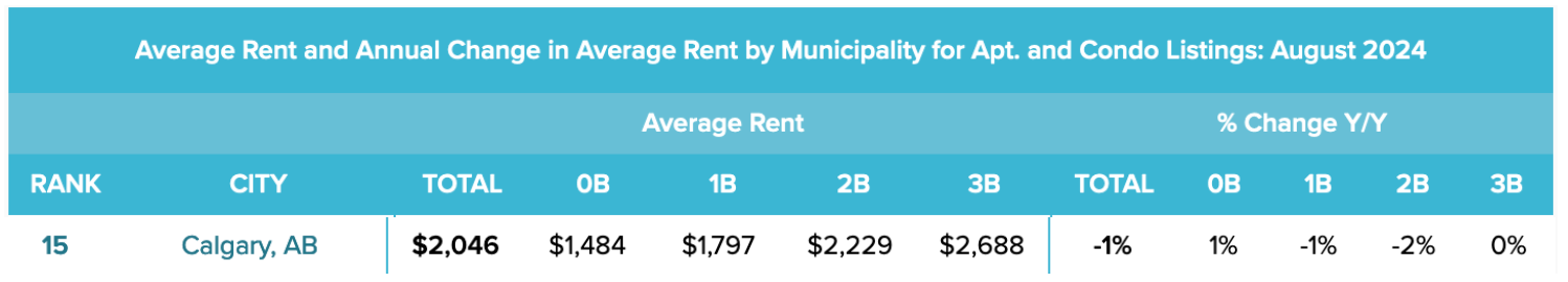 The rent trend has also reflected this with a small decrease in rent in Calgary: